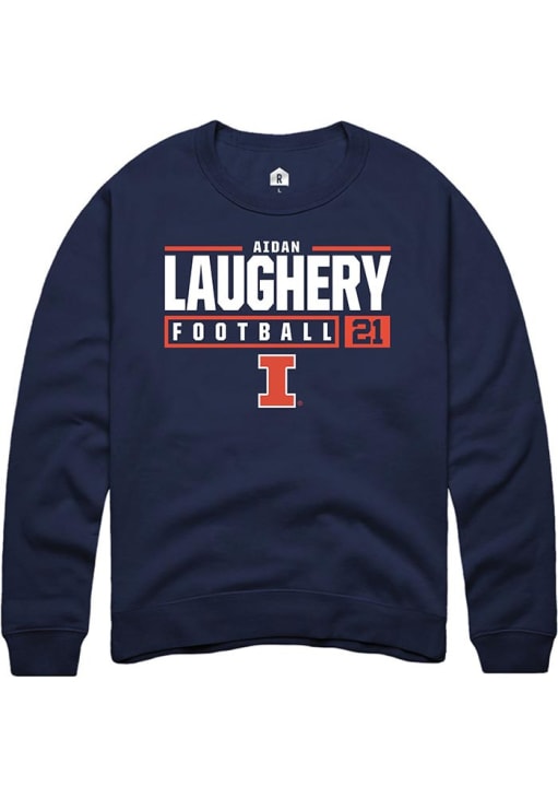 Aidan Laughery Rally Mens Navy Blue Illinois Fighting Illini NIL Stacked Box Crew Sweatshirt
