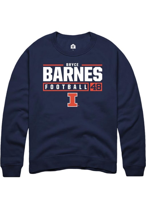 Bryce Barnes Rally Mens Navy Blue Illinois Fighting Illini NIL Stacked Box Crew Sweatshirt