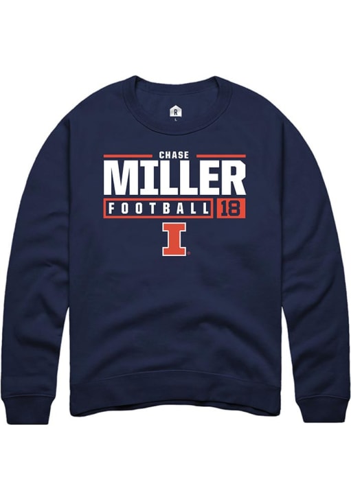 Chase Miller Rally Mens Navy Blue Illinois Fighting Illini NIL Stacked Box Crew Sweatshirt