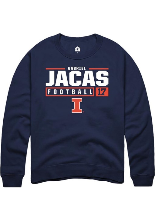 Gear up for the ultimate game day experience with this remarkable Illinois Fighting IlliniMens Navy Blue NIL Stacked Box Crew Sweatshirt! Designed with the true fan in mind, this Fighting Illini Long Sleeve Crew Sweatshirt features a custom graphic with player's name and number. Stay warm and comfortable with this Mens Illinois Fighting Illini Crew Sweatshirt.