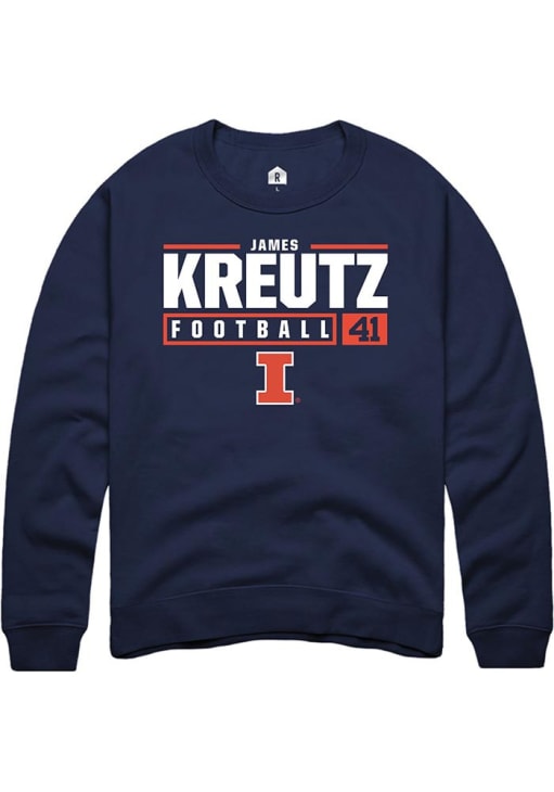 James Kreutz Rally Mens Navy Blue Illinois Fighting Illini NIL Stacked Box Crew Sweatshirt