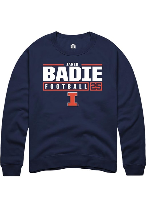 Jared Badie Rally Mens Navy Blue Illinois Fighting Illini NIL Stacked Box Crew Sweatshirt