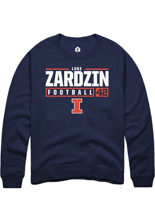 Luke Zardzin Rally Mens Navy Blue Illinois Fighting Illini NIL Stacked Box Crew Sweatshirt