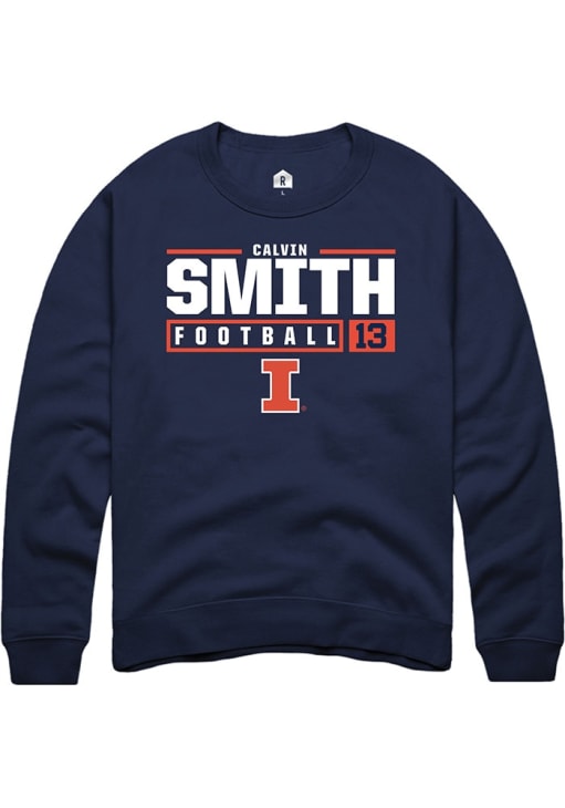 Calvin Smith Rally Mens Navy Blue Illinois Fighting Illini NIL Stacked Box Crew Sweatshirt