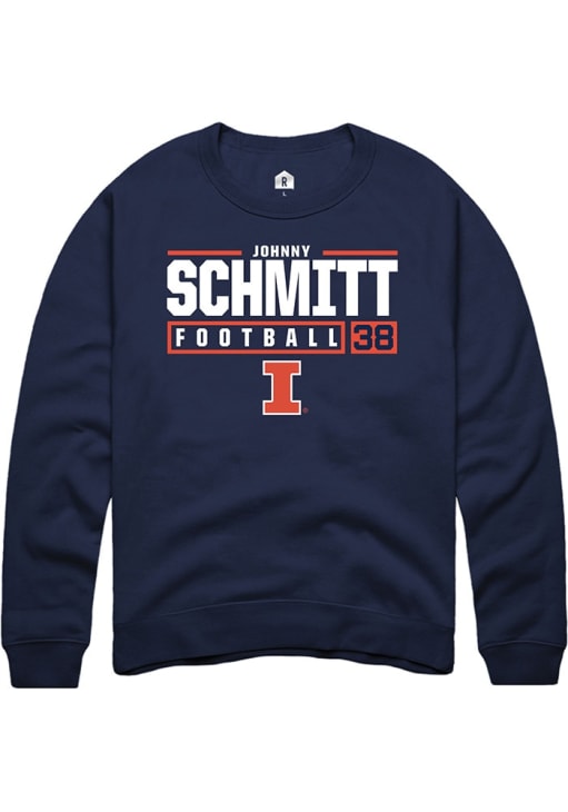 Johnny  Schmitt Rally Mens Navy Blue Illinois Fighting Illini NIL Stacked Box Crew Sweatshirt