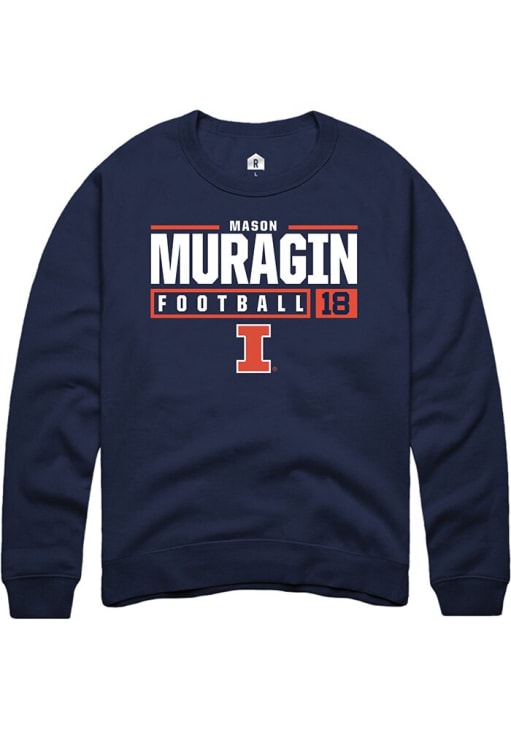 Mason Muragin Rally Mens Navy Blue Illinois Fighting Illini NIL Stacked Box Crew Sweatshirt
