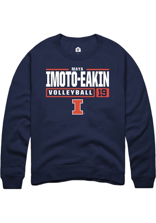 Maya Imoto-Eakin Rally Mens Navy Blue Illinois Fighting Illini NIL Stacked Box Crew Sweatshirt