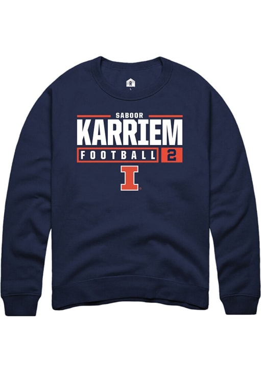 Karriem Saboor Rally Mens Navy Blue Illinois Fighting Illini NIL Stacked Box Crew Sweatshirt