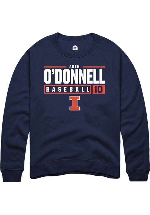 Aden O'Donnell Rally Mens Navy Blue Illinois Fighting Illini NIL Stacked Box Crew Sweatshirt