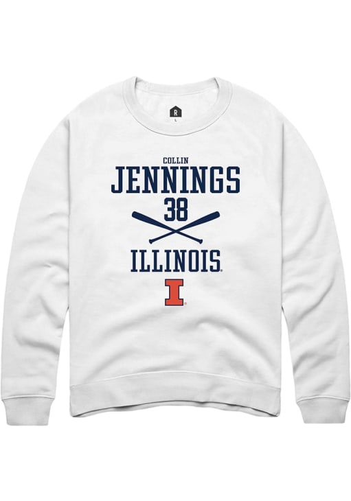 Collin Jennings Rally Mens White Illinois Fighting Illini NIL Sport Icon Crew Sweatshirt