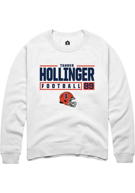 Tanner Hollinger Rally Mens White Illinois Fighting Illini NIL Stacked Box Crew Sweatshirt