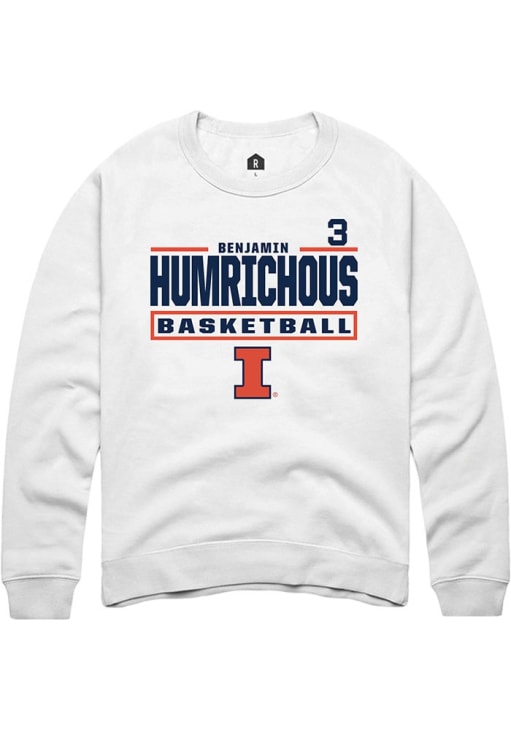 Benjamin Humrichous Rally Mens White Illinois Fighting Illini NIL Stacked Box Crew Sweatshirt