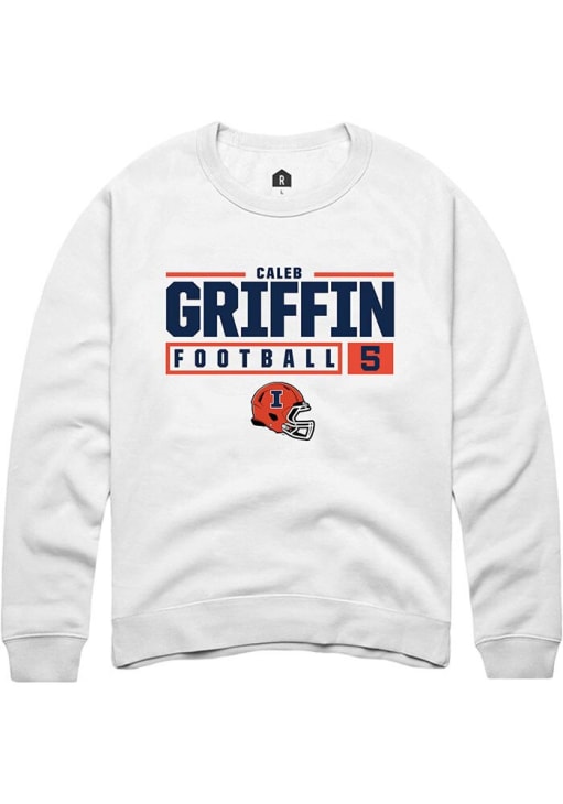 Caleb Griffin Rally Mens White Illinois Fighting Illini NIL Stacked Box Crew Sweatshirt