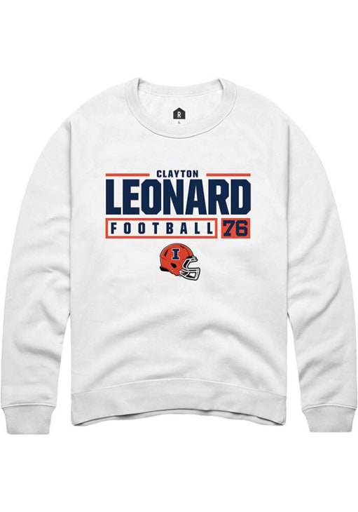 Clayton Leonard Rally Mens White Illinois Fighting Illini NIL Stacked Box Crew Sweatshirt