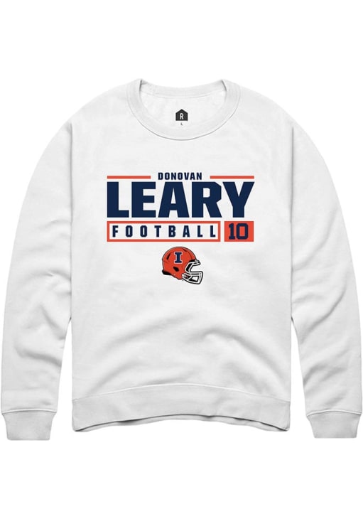 Donovan Leary Rally Mens White Illinois Fighting Illini NIL Stacked Box Crew Sweatshirt