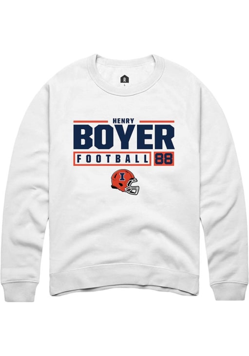 Henry Boyer Rally Mens White Illinois Fighting Illini NIL Stacked Box Crew Sweatshirt