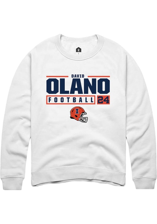 David Olano Rally Mens White Illinois Fighting Illini NIL Stacked Box Crew Sweatshirt