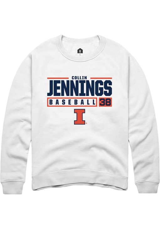 Collin Jennings Rally Mens White Illinois Fighting Illini NIL Stacked Box Crew Sweatshirt