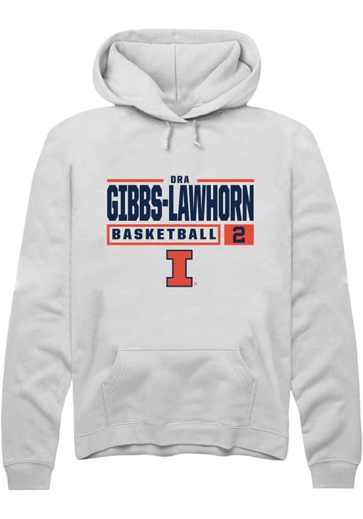 Dravyn Gibbs-Lawhorn Rally Mens White Illinois Fighting Illini NIL Stacked Box Hooded Sweatshirt