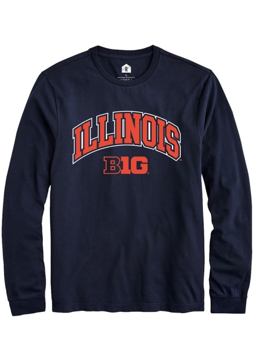 Show your Illinois Fighting Illini spirit in this Illinois Navy Blue T Shirt! This Illinois Arch Logo Long Sleeve T Shirt makes a great layer for cooler nights cheering on the Fighting Illini. Featuring a digitally printed graphic, this Illinois Fighting Illini Long Sleeve Tee is an essential addition for every fan. Go, Illini, Go!