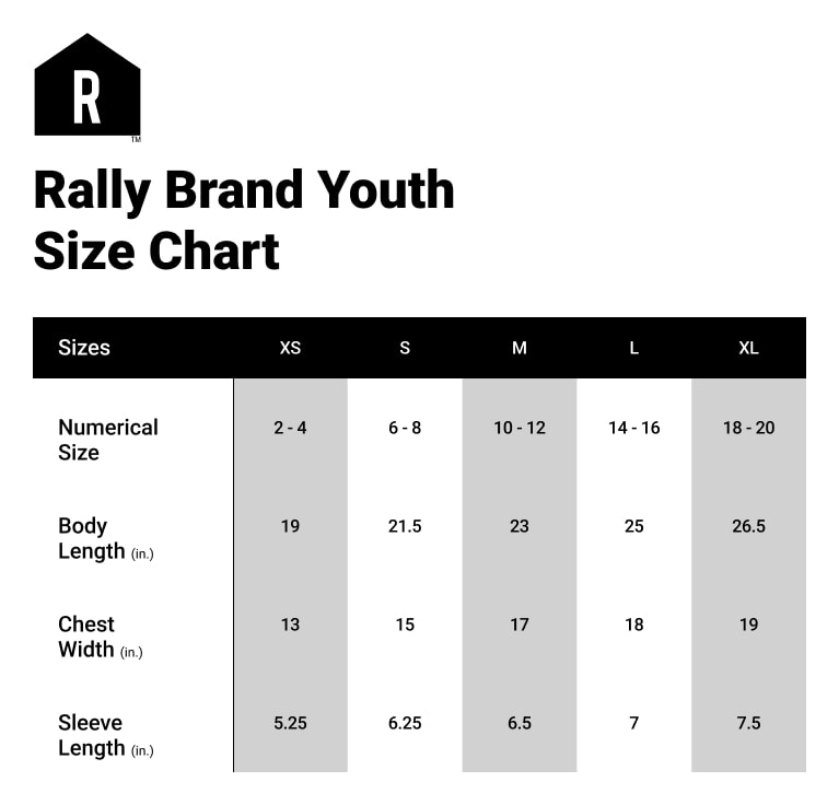 Size Chart for Youth Illinois Fighting Illini Navy Blue Rally Stacked Cheer Short Sleeve T-Shirt