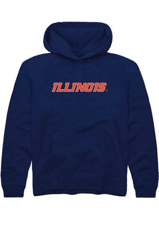 Youth Illinois Fighting Illini Navy Blue Rally Wordmark Long Sleeve Hooded Sweatshirt