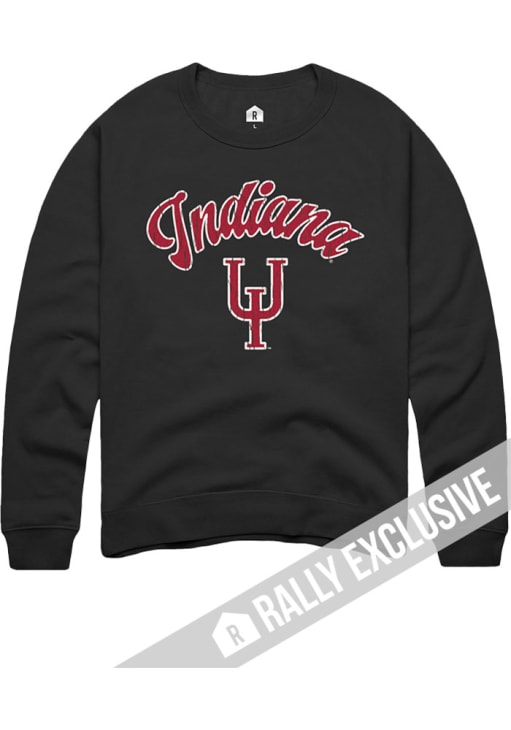 Mens Indiana Hoosiers Black Rally Vintage Arch Mascot Crew Sweatshirt