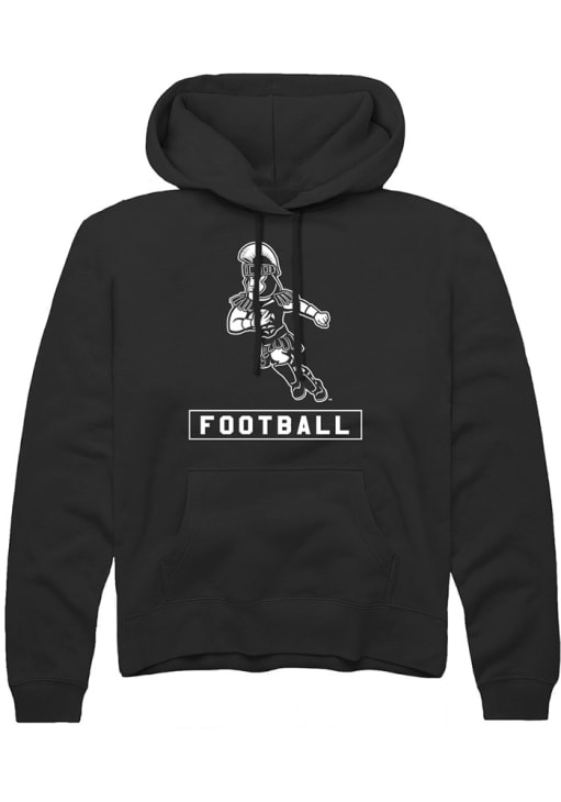 Embrace your Spartans pride and showcase your team spirit with confidence in this Michigan State Spartans Long Sleeve Hoodie! Stay warm and stylish with the MSU Mens Black Sparty Playing Football Hooded Sweatshirt. Designed with screen print sport and mascot logo across chest, this Spartans Long Sleeve Hoodie is a must-have for dedicated fans.