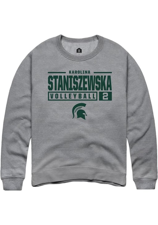 Karolina Staniszewska Rally Mens Graphite Michigan State Spartans NIL Stacked Box Crew Sweatshirt