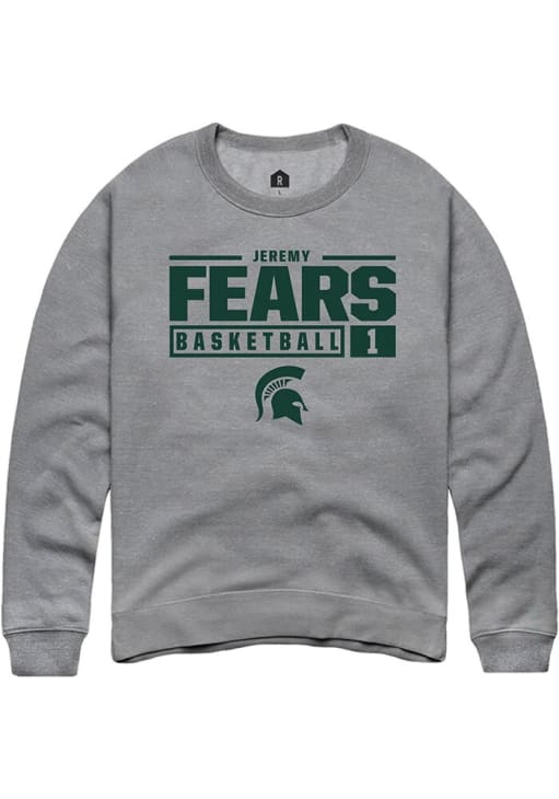 Jeremy Fears Rally Mens Graphite Michigan State Spartans NIL Stacked Box Crew Sweatshirt