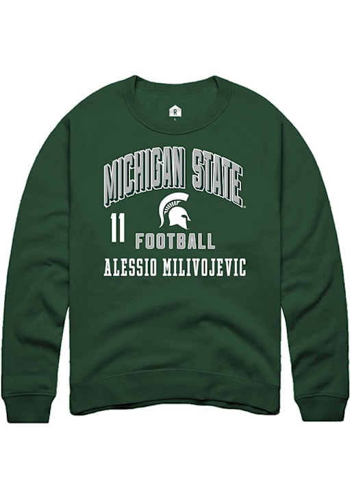 Gear up for the ultimate game day experience with this remarkable Michigan State SpartansMens Green NIL Arch Logo Crew Sweatshirt! Designed with the true fan in mind, this Spartans Long Sleeve Crew Sweatshirt features a NIL graphic. Stay warm and comfortable with this Mens MSU Spartans Crew Sweatshirt.
