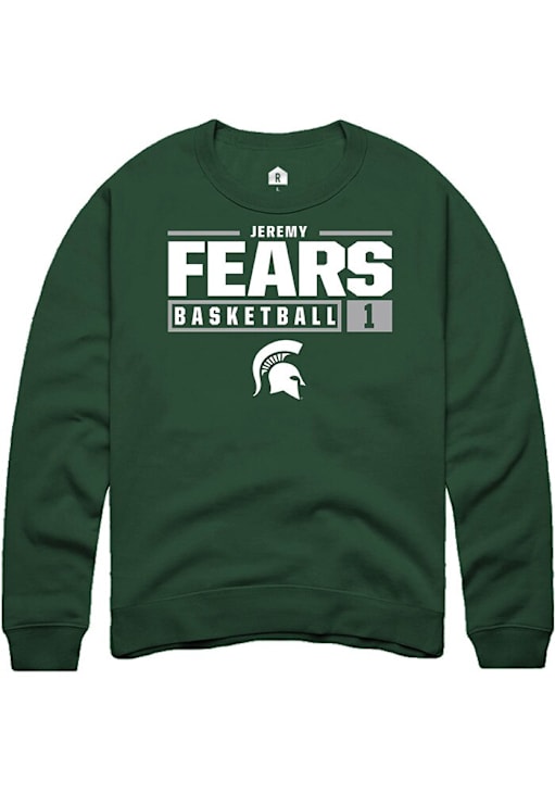 Jeremy Fears Rally Mens Green Michigan State Spartans NIL Stacked Box Crew Sweatshirt