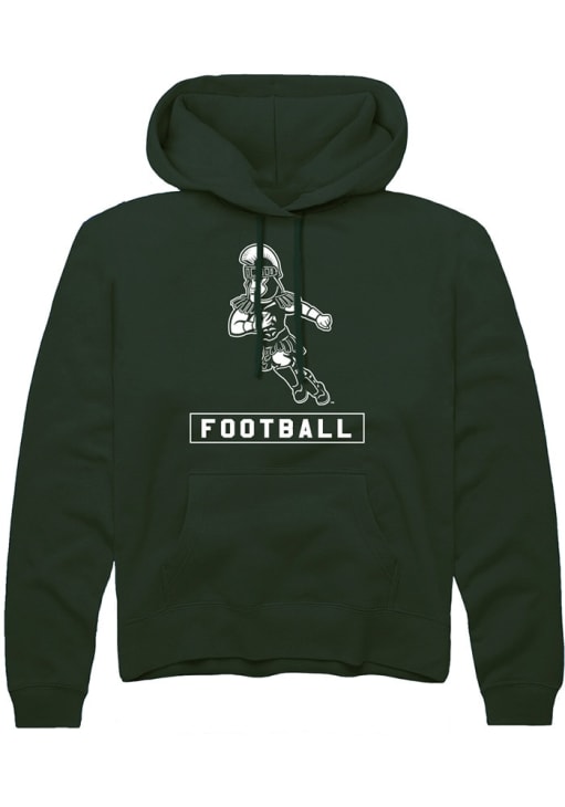Embrace your Spartans pride and showcase your team spirit with confidence in this Michigan State Spartans Long Sleeve Hoodie! Stay warm and stylish with the MSU Mens Green Sparty Playing Football Hooded Sweatshirt. Designed with screen print sport and mascot logo across chest, this Spartans Long Sleeve Hoodie is a must-have for dedicated fans.