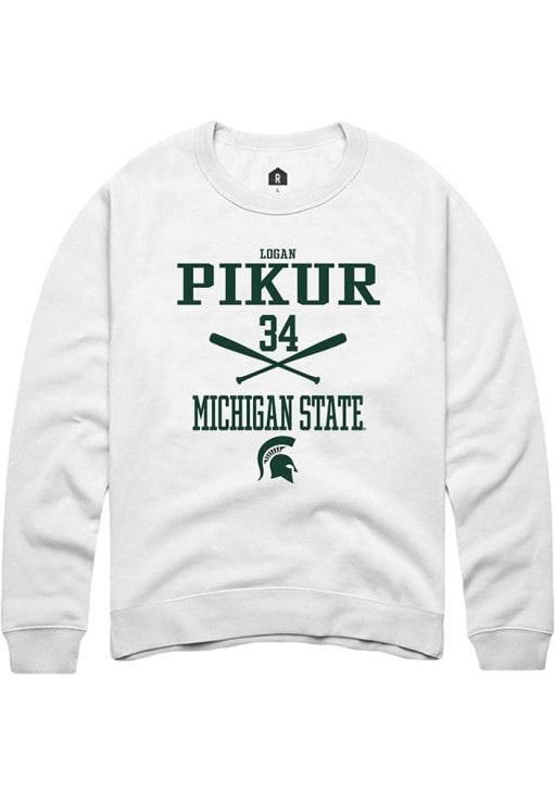 Logan Pikur Rally Mens White Michigan State Spartans NIL Sport Icon Crew Sweatshirt