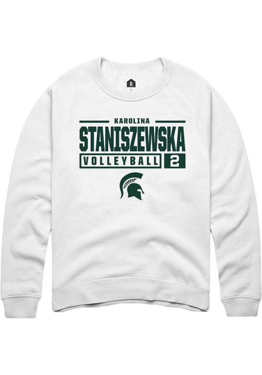Karolina Staniszewska Rally Mens White Michigan State Spartans NIL Stacked Box Crew Sweatshirt