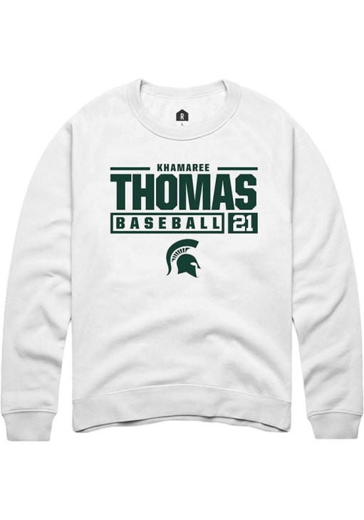Khamaree Thomas Rally Mens White Michigan State Spartans NIL Stacked Box Crew Sweatshirt
