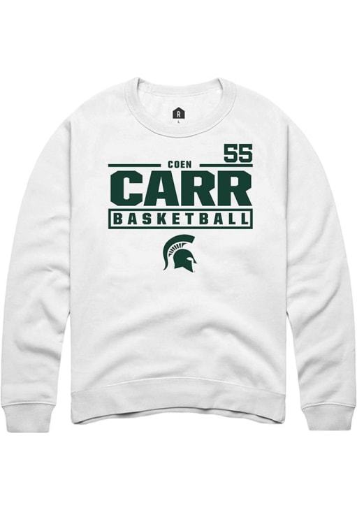 Coen Carr Rally Mens White Michigan State Spartans NIL Stacked Box Crew Sweatshirt