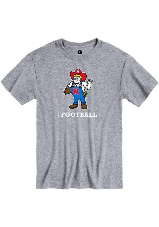 Display your team spirit with this remarkable Nebraska Cornhuskers Rally Grey Football Herbie Short Sleeve T Shirt! The Nebraska Short Sleeve Tee showcases a screen print of Herbie with football graphic over sport name in block letters that truly sets it apart. Stand out from the crowd and proudly declare your allegiance to the Cornhuskers with this exceptional Grey Nebraska T Shirt. Go Huskers!