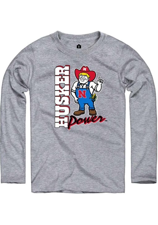 Show your Nebraska Cornhuskers spirit in this Nebraska Grey T Shirt! This Nebraska Husker Power No 1 Long Sleeve T Shirt makes a great layer for cooler nights cheering on the Cornhuskers. Featuring a screen print of Husker Power with Herbie on front chest, this Nebraska Cornhuskers Long Sleeve Tee is an essential addition for every fan. Go Huskers!