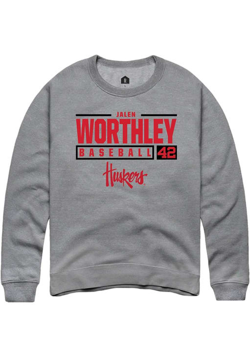 Jalen Worthley Rally Mens Graphite Nebraska Cornhuskers NIL Stacked Box Crew Sweatshirt