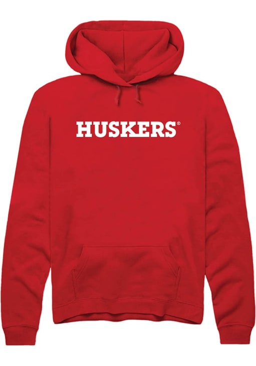 Mens Nebraska Cornhuskers Red Rally Mascot Wordmark Hooded Sweatshirt
