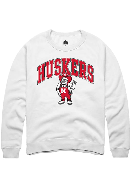 Gear up for the ultimate game day experience with this remarkable Nebraska CornhuskersMens White Arched Mascot Crew Sweatshirt! Designed with the true fan in mind, this Cornhuskers Long Sleeve Crew Sweatshirt features a screen print of Nebraska over Herbie. Stay warm and comfortable with this Mens Nebraska Cornhuskers Crew Sweatshirt.