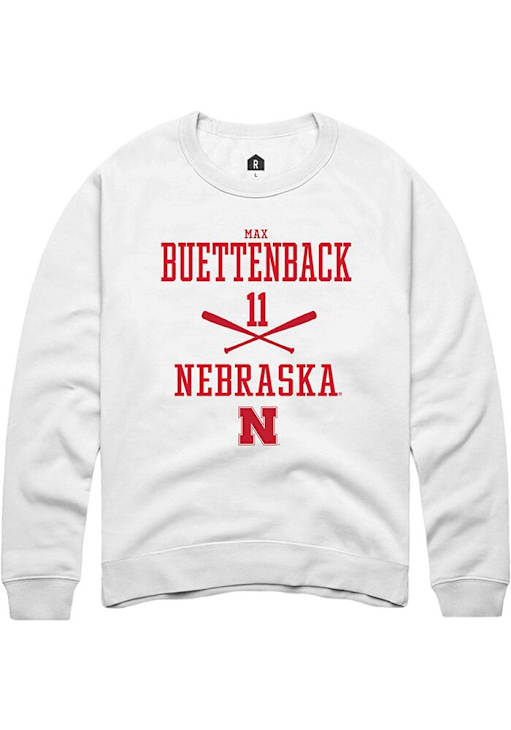 Max Buettenback Rally Mens White Nebraska Cornhuskers NIL Sport Icon Crew Sweatshirt
