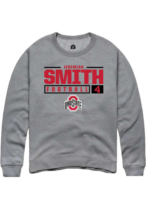 Jeremiah Smith Rally Mens Graphite Ohio State Buckeyes NIL Stacked Box Crew Sweatshirt