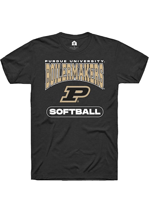 Display your team spirit with this remarkable Purdue Boilermakers Rally Black Softball Short Sleeve T Shirt! The Purdue Short Sleeve Tee showcases a digitally printed graphic that truly sets it apart. Stand out from the crowd and proudly declare your allegiance to the Boilermakers with this exceptional Black Purdue T Shirt. Hail Purdue!