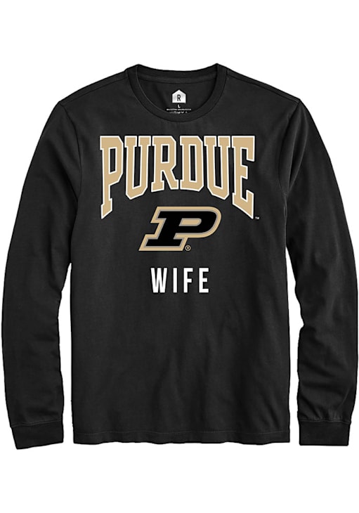 Show your Purdue Boilermakers spirit in this Purdue Black T Shirt! This Purdue Wife Long Sleeve T Shirt makes a great layer for cooler nights cheering on the Boilermakers. Featuring a digitally printed graphic, this Purdue Boilermakers Long Sleeve Tee is an essential addition for every fan. Hail Purdue!