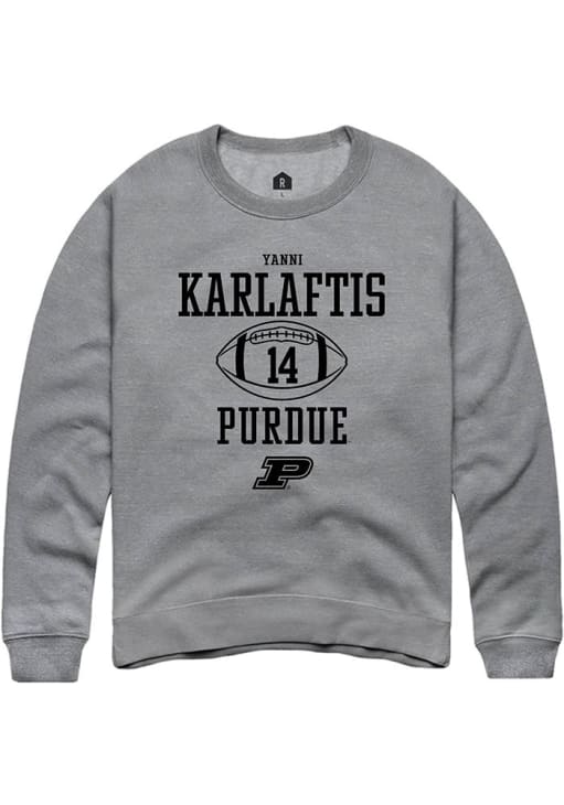 Yanni Karlaftis Rally Mens Graphite Purdue Boilermakers NIL Sport Icon Crew Sweatshirt