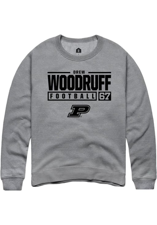Drew Woodruff Rally Mens Graphite Purdue Boilermakers NIL Stacked Box Crew Sweatshirt
