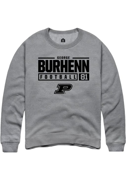 George Burhenn Rally Mens Graphite Purdue Boilermakers NIL Stacked Box Crew Sweatshirt