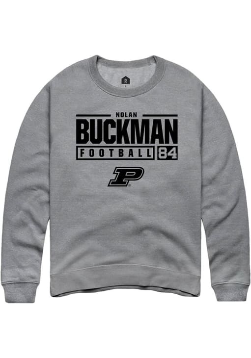 Nolan Buckman Rally Mens Graphite Purdue Boilermakers NIL Stacked Box Crew Sweatshirt
